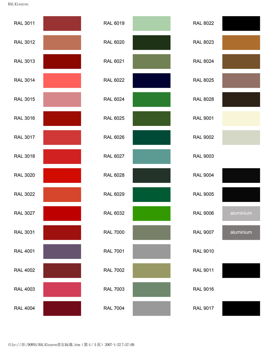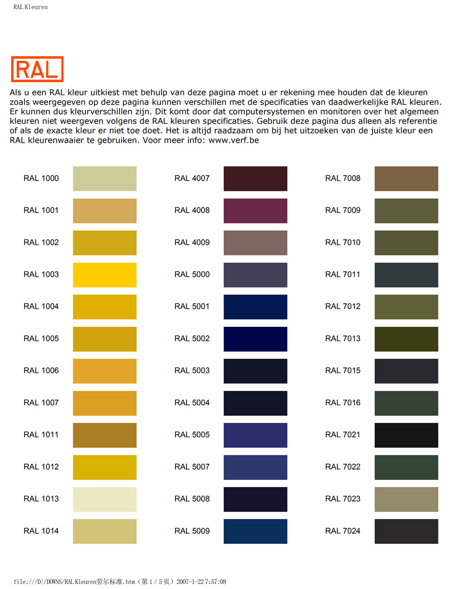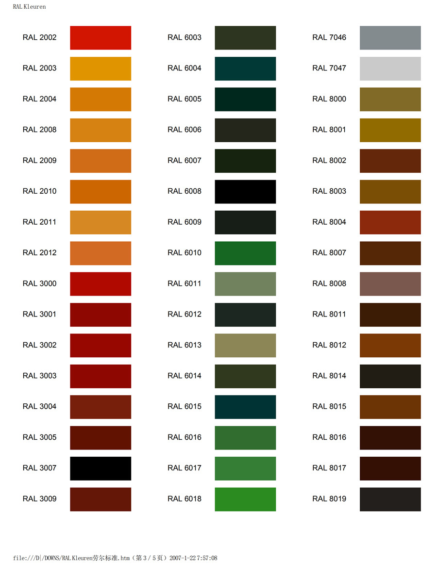 產品名稱:勞爾K7色卡